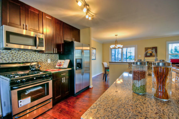 OPEN A spacious and bright reconfigured open concept kitchen boasts…